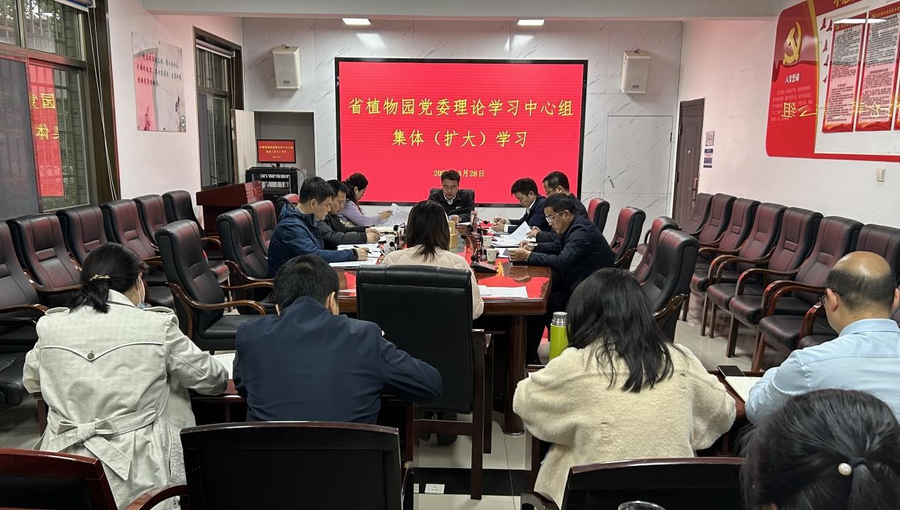 3月28日,省植物园党委理论学习中心组举行2025年第三次集体(扩大)学习,传达学习贯彻全国两会精神,并逐字逐句研学中央八项规定实施细则。园党委书记马涛主持会议,党委班子成员、各党支部书记参加学习。