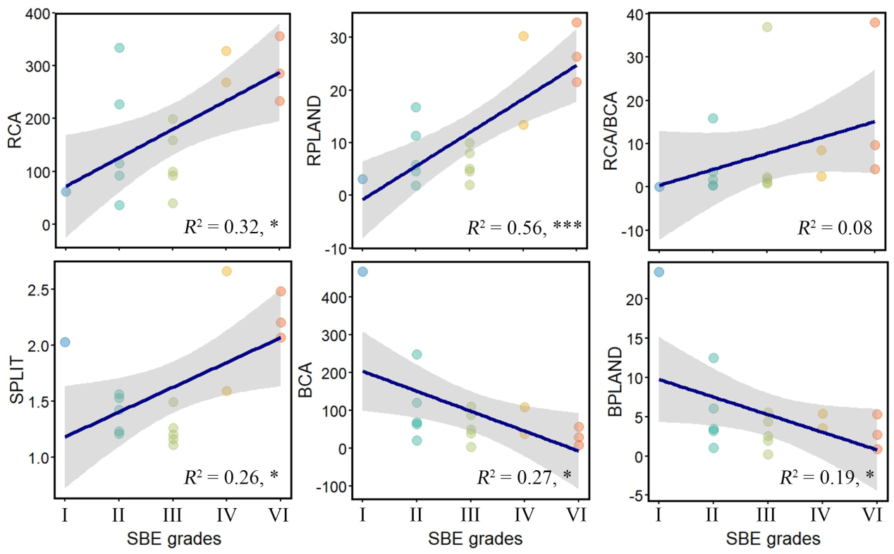 图2 景观指标和SBE的结构方程建模(SEM)结果