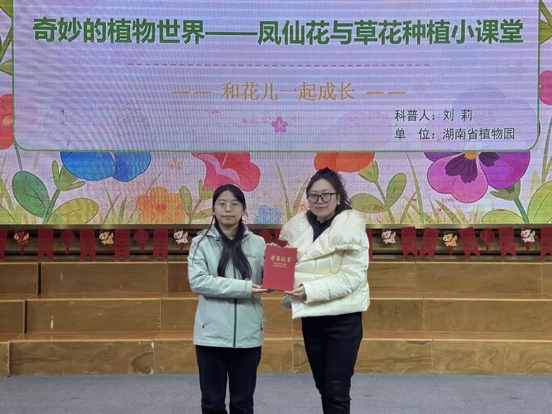 讲座以《奇妙的植物世界——凤仙花与草花种植小课堂》为题,来自湖南省植物园保育所的科普老师为现场的学生们揭开了植物生长的奥秘。主讲人详细讲述了凤仙花的完整生命周期,从种子破土而出,到生根发芽、绽放花朵,再到结出种子,生动呈现了植物生长发育的全过程。同时,讲座还分享了实用的种植技术,包括土壤选择、光照与水分控制、日常养护及常见病虫害防治等,帮助同学们掌握家庭环境下培育植物的基本方法。