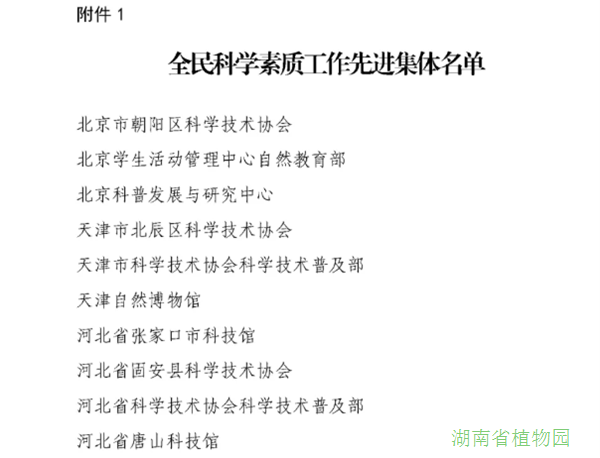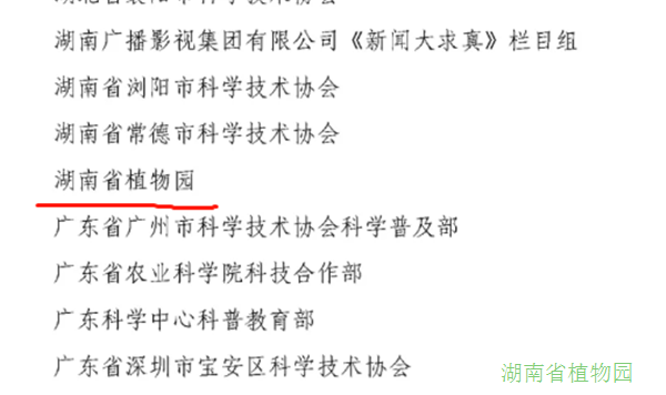 湖南省植物园荣获“全民科学素质工作先进集体”荣誉称号