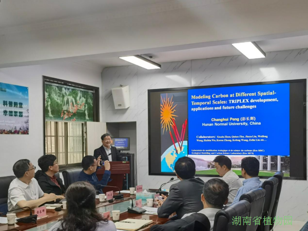 2022年5月20日上午,湖南省植物园与湖南师范大学地理科学学院在我园举行合作共建长株潭生态站暨学术交流会议。湖南师范大学周国华院长、彭长辉特聘教授等一行7人,亚热带农业生态研究所邓正苗副处长,园党委书记彭春良、主任刘玮、副主任胡俊东和蒋利洪出席此次活动,生态所全体成员参加。 与会领导和专家首先实地考察了长株潭生态站站房、综合气象观测场等地,周国华院长、彭长辉教授、彭春良书记、刘玮主任共同为长株潭城市生态联合观测研究站揭牌。随后,全体人员在园二楼会议室举行学术交流会,彭长辉教授进行了Modeling ecosystem carbon at different spatial-temporal scales(不同时空尺度下生态系统碳模型)为主题的学术报告,详细阐述了碳模型TRIPLEX的发展历程、模型原理、主要特点、模型验证、具体案例应用以及未来展望。交流会上周国华院长对双方的合作表示了高度肯定和全力支持,认为本次合作共建是两家单位优势互补、强强联合、合作共赢。刘玮主任表示双方的合作能将面向双碳等科研热点,更好地为长株潭生态建设做出贡献。彭春良书记希望双方的合作能有效将双方单位的科研优势相结合,为双方下一步研究取得丰硕成果和长足发展打下基础。 本次合作共建的顺利举行,是在去年双方签订合作协议基础上的进一步深化,省植物园将依托长株潭生态站长期定位观测以及城市生态研究等特色优势,积极探索合作共建模式,布局大尺度、跨行业和多学科交叉研发的趋势,实现共建、共享、共同发展。