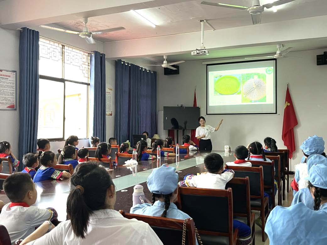 仪式结束后,团队成员为麻阳县第一锦江小学的学生们讲授科普课。课程采用趣味讲解与多媒体展示相结合的方式,向孩子们介绍了食虫植物、珍稀花卉等奇特物种的生存智慧和独特之处。孩子们近距离观察了翅果、陀螺果等植物标本,参与互动实验,现场学习氛围浓厚。课程还融入了冰糖橙、核桃等麻阳本土植物的科普内容,引导学生们关注身边的植物资源,树立保护意识。