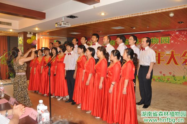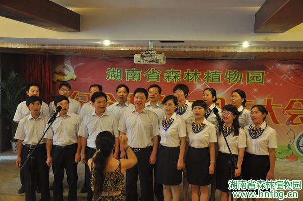 《团结就是力量》、《大海航行靠舵手》、《众人划桨撑大船》等一曲曲脍炙人口的革命歌曲让大家重温革命历史,激发革命激情,传递了植物园全体干部职工对党和祖国的深深敬意和祝福,使每位现场观众身临其境、热血沸腾,受到了一次深刻的红色教育。而《好美个湖南森林植物园》、《春之歌》、《夏之恋》、《秋之色》、《冬之韵》、《四季花儿开》这六首由我园自行创作的植物园园歌则唱出了植物园人的自豪和力量,台上台下齐声歌唱,产生了共鸣,场面激烈,温暖感人。