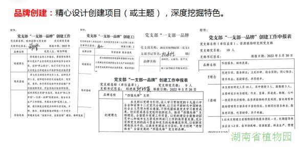 “一支部一品牌”创建活动开展以来,湖南省植物园依托自身科研科普、生态旅游等资源,把品牌创建活动同党风廉政建设、科技创新、研学教育、生态旅游、文明创建的工作等有机结合,充分发挥党组织的政治核心作用,全面落实党建规章制度,打造“一个支部就是一个品牌、一名党员就是一面旗帜”,不断推进党建与业务深度融合,以高质量党建引领高质量发展。