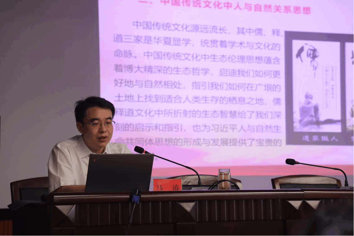 马涛主任深入阐述了习近平总书记有关人与自然和谐共生理念的重大意义及核心要义,从对中国传统文化中人与自然关系思想的提炼总结,延伸到对人与自然和谐共生的现代化及实现路径的思考探索。他以海南热带雨林国家公园为例,生动列举了人与自然和谐共生的具体实践,最后站在建设国家植物园体系的国家战略的高度,勉励全园上下要胸怀“国之大者”,积极融入国家植物园体系,并提出从明确发展方向、强化迁地保护、深入科学研究、突出园林园艺展示、加强科普教育五个方面发力的具体要求。