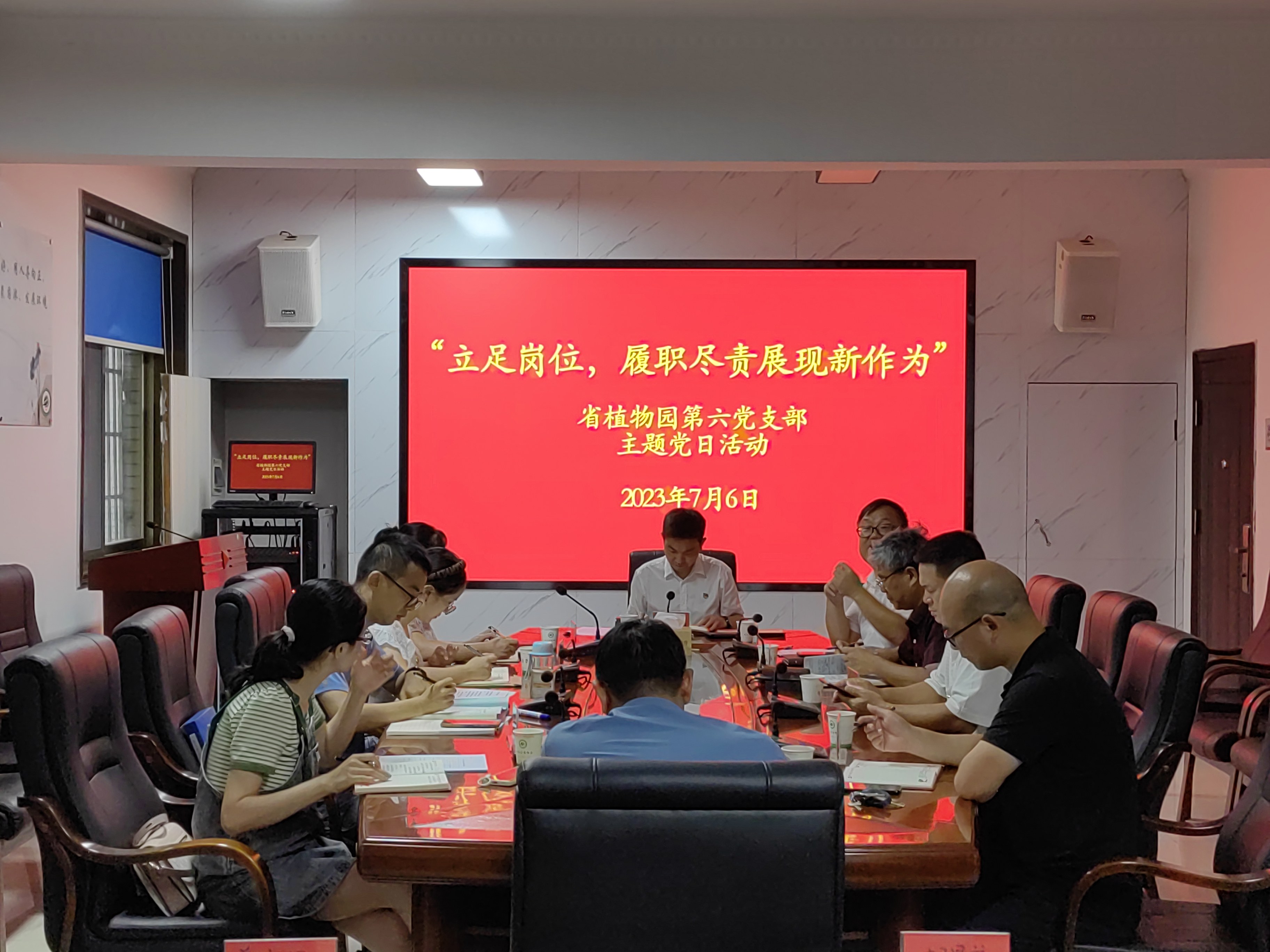 2023年7月6日,省植物园第六党支部开展“立足岗位,履职尽责展现新作为”主题党日活动,支部全体党员参加,园副主任廖菊阳以普通党员身份出席活动。