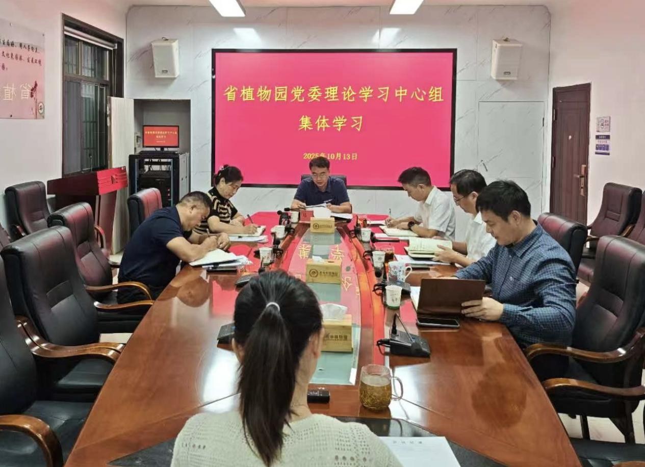 10月13日,省植物园党委理论学习中心组举行第九次集体学习,围绕《习近平谈治国理政》第五卷开展专题学习研讨,并传达学习党的二十届四中全会公报有关内容。园党委书记马涛主持学习会议,党委班子成员参加学习。