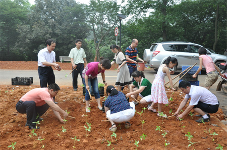 7月13日下午-14日,我园先后两次组织在职员工义务种植向日葵。7月13日下午我园团支部组织30余名青年员工开展义务种植向日葵活动。7月14日上午,由园领导带头,除外出和特殊岗位值班外,全园在职70多人齐上阵,各部门负责人带领各部门的员工开展了一场种植向日葵的劳动竞赛。看谁干劲大,栽得好,栽得快,成活率高。所有参加种植者热情很高,他们头顶烈日,士气高昂,有的挖土、有的运苗、有的栽种,分工合作,一幅和谐生动的劳动场面展现在这里。