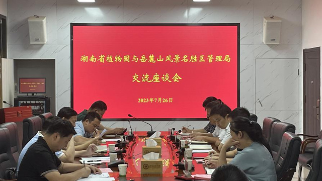 岳麓山风景名胜区管理局曾总一行参观了园科研中心、长株潭城市生态站、林产品展示中心、植物保育研究所等。廖菊阳副主任对岳麓山风景名胜区管理局一行表示热烈欢迎,并介绍了我园基本情况,以视频展播的方式展示省植物园近年来发展主要成果,在省市共建背景下,省植物园与岳麓山风景名胜区管理局可以进一步加强战略合作交流。随后双方科研人员围绕岳麓山生态资源及价值、植物多样性保护与利用、花卉培育技术等进行讨论交流。曾总表示,加快推进深化共建合作事项,增强双方优势互补。双方一致同意今后要在生态发展、植物多样性保护、科普教育等方面建立长期的、更深入的合作关系,共同谱写相互促进、合作共赢的新篇章。