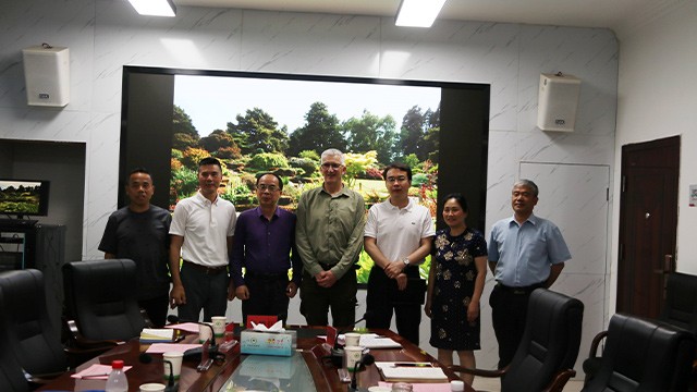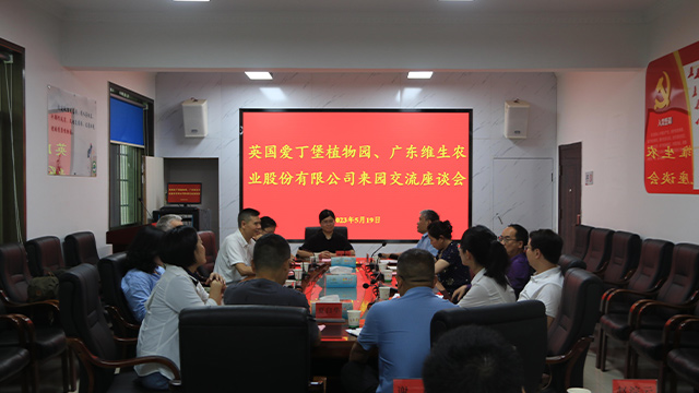 为科学对标国际国内植物园发展新趋势,进一步助推湖南省植物园园艺建设、花卉产业发展。2023年5月19日,我园特邀请英国爱丁堡植物园前副院长David Sim Paterson、广东维生农业股份有限公司总经理李华养一行6人来我园开展交流座谈。园党委书记刘玮、园主任马涛、副主任李柏海、胡俊东及相关人员陪同并参加座谈交流。
