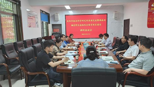 5月17日上午,岳阳市林业科学研究所李科所长一行来我园开展湖南省濒危野生植物综合保育体系建设交流座谈。园党委书记刘玮、园主任马涛、副主任廖菊阳和相关部门负责人及科研人员代表参加会议。