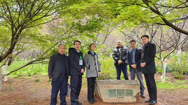 事务所一行参观了名花广场、樱花湖等地,双方在象征湘滋友好往来的“友谊林”文化纪念碑前合影。马涛主任主持了座谈会。会上,双方互相介绍了基本情况,展示了地域特色美景,共同回顾了自1983年湖南省与滋贺县结成友好省县以来,双方以樱为媒开展的友好交流和缔结的深厚友谊。分管国际合作与对外交流的李柏海副主任介绍,1985年滋贺县赠送2000株染井吉野樱给湖南省人民政府作为礼物,湖南省人民政府转交给湖南省林业厅,当时恰逢湖南省森林植物园筹备建设,便将其中的一部分樱花定植在园区内,30多年过去,这批樱花在我园的细心呵护下,已成了长沙市知名的赏樱景点,这批樱花树承载着并见证了湖南人民与滋贺县人民的深厚友谊。