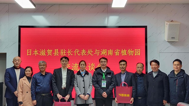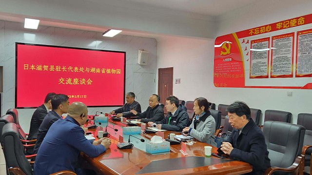 3月17日,日本滋贺县湖南事务所新任所长西村文彦先生与即将卸任的原所长荻野大先生一行来我园开展友好交流。省林业局科技外事处谢志红副处长、省植物园马涛主任与李柏海副主任及相关人员陪同考察并参加座谈交流。