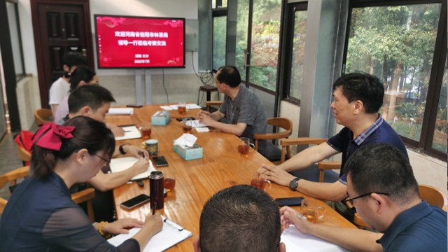 2022年7月19日下午,河南省信阳市林业和茶产业局党组书记、局长吴国庆一行六人到我园进行参观交流,园生态所和自然教育中心负责人及相关成员陪同参加考察交流。