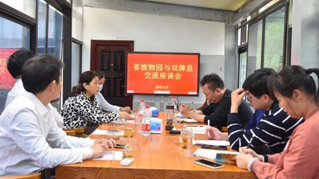 2022年4月22日,双牌县县委副书记、统战部长雷安术带领县委办和县泷泊国有林场负责同志一行5人来我园开展学习交流。园党委书记彭春良、副主任胡俊东出席座谈会,生态所负责人及相关人员陪同参加考察交流。