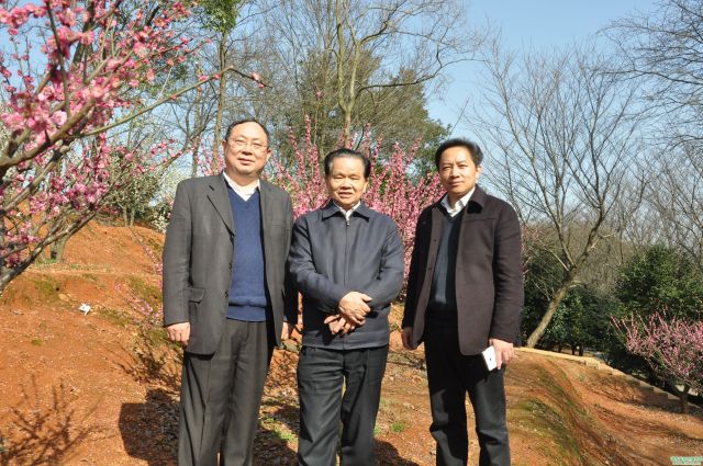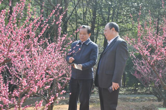 2月16日上午,雪后天晴,艳阳高照,省人大常委会原副主任罗海藩在省林业厅巡视员唐苗生的陪同下,来到省植物园视察正在举办的“冬之韵”梅花·杜鹃花展,省植物园主任李林山、副主任胡俊东陪同视察并介绍花展的有关情况。