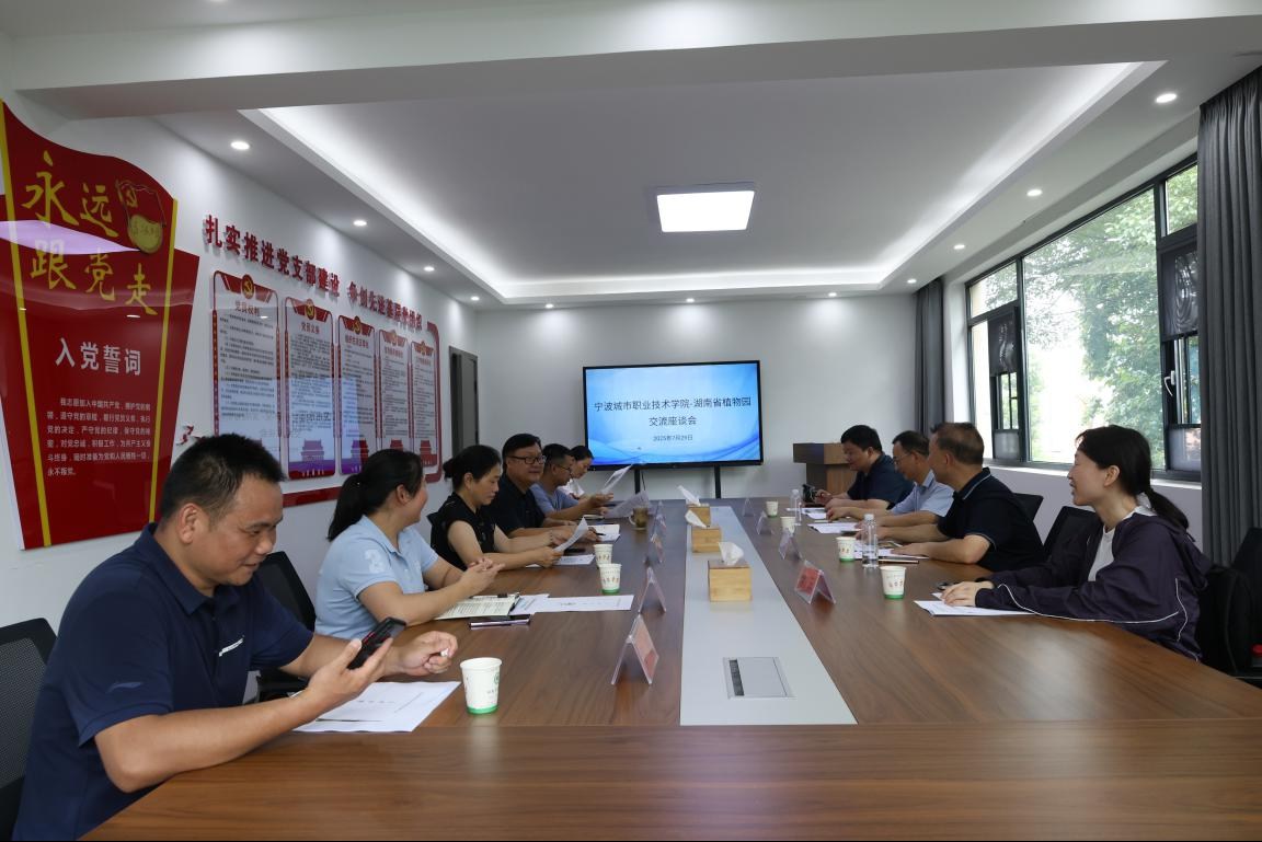 7月29日,宁波城市职业技术学院王志龙副校长一行4人来园开展科研交流主任廖菊阳,副主任胡俊东、陈迎辉出席,综合部、花卉所、生态所和自然教育中心相关人员参加。