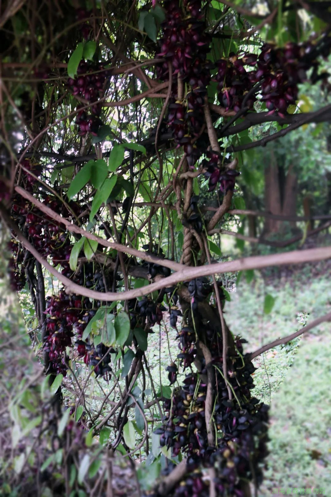 相比起其他花朵的娇艳可人,常春油麻藤却是野蛮的和树枝缠绕在一起。从远处看,一朵朵深紫色的花儿密密麻麻的挂在老枝上,凑近一些,欣赏一下它的花朵,看看,像不像小雀在开会?如果你再细细的去闻一下便会被它特殊的气味给“劝返”。