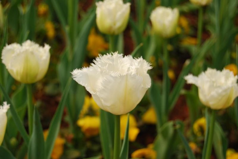 繁多的郁金香品种中有一类叫做流苏群,又称饰边型,花瓣边缘具有不规则的须边,就像衣物上精致的流苏一般。