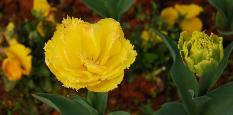 它们起源于考夫曼型和达尔文杂交型的芽变和郁金香自然授粉种子实生苗选出,花期晚,植株中等或偏高,约30~70cm,是切花良种,繁殖力强,适于早春促成栽培。植物园此次展出两个饰边型品种,分别为‘蜜月’和‘维亚’。