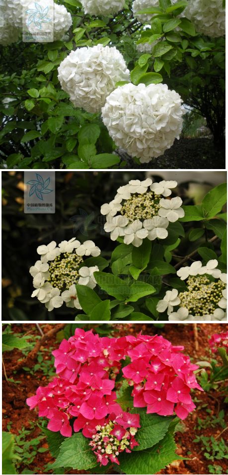 它们都有大大的花序,呈半球形或球形,花序外围都有花冠较大的不孕花(不结实花)。