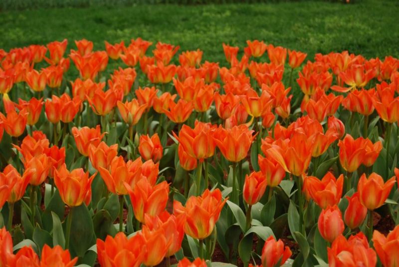 2018年省森林植物园第十届湖南世界名花生态文化节已经盛大开幕,省植物园也迎来了更美的时候,郁金香是每年不可错过的重头戏之一。今年郁金香花展的主题是“心花怒放”,从高空俯瞰名花广场,可以看到一朵巨型的重瓣(多瓣)玫瑰花,是在原来的十二个花瓣的基础上,又由内而外增添了许多“小花瓣”,由各色郁金香与其他球根花卉构成,丰富了色彩与造型,使这朵“玫瑰花”更加娇艳!行走其间,则是蔚为壮观的花海,由‘红色印象’、‘黄普瑞斯玛’、‘小黑人’、‘橙色帝王’等郁金香品种为主构成,这些品种是经过省植物园科技人员多年研究选定,选其花大色艳、适应长沙气候、表现稳定,为的是给大家呈现一个更美郁金香花海,整体花期为3月上旬至4月上旬或中旬。