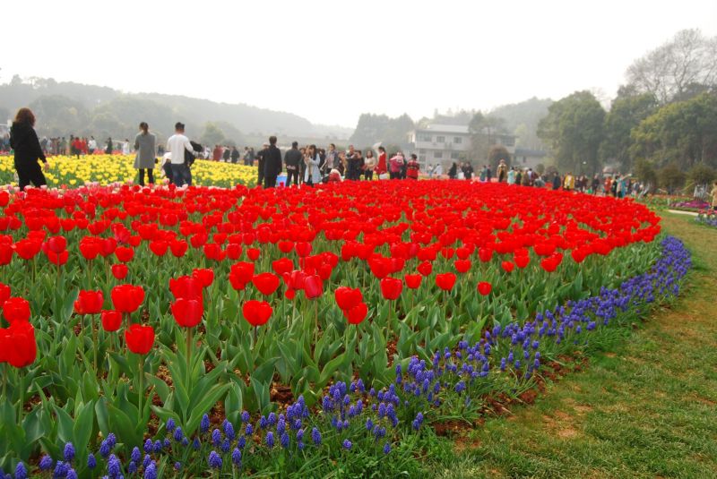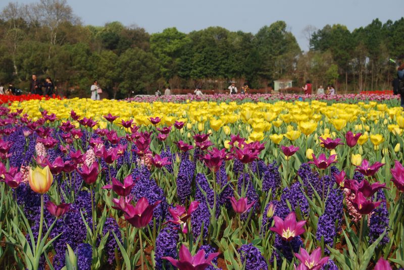今年共引进栽培了郁金香等球根花卉近70万株共120个品种,除了郁金香、风信子、葡萄风信子、洋水仙等种类,还引种栽培了冠状银莲花、春番红花、大花葱、荷兰鸢尾等相对少见的种类共20个品种,还引进了爆竹百合、蓝壶韭、紫灯花等新种类26个品种,这些球根植物极其少见,使得这次球根花卉展示的物种数达到近30种,是省植物园历次郁金香展球根种类之最,也是球根花卉在湖南较为全面的实地展示。但是在2009年以前,湖南和整个长江以南地区都是鲜少规模栽培郁金香等球根花卉的。