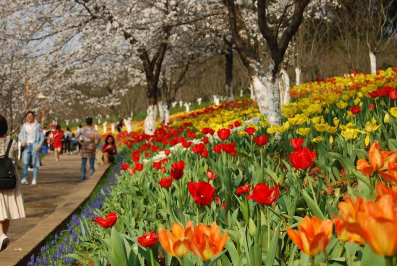 时间回到2009年,那时省植物园第一次尝试引进郁金香,却遭到了许多质疑与反对。因为一般认为长江以北才适宜种植郁金香,长沙以前没有大规模栽培成功的历史,也因为长沙春季昼夜温差大,郁金香白天花开得大,晚上又闭合,如此花朵十分易凋谢,花期很短,栽培意义不大。但是省植物园科技人员通过资料的收集与反复论证,与荷兰专家确定了技术方案后,大胆引进栽培了30万株郁金香。2010年春天,郁金香开花了,花大色艳,花期也长,游客啧啧称奇、十分喜爱,可以说是大获成功。自此,省植物园每年都会引进数十万甚至超过百万的郁金香种球、百余个品种,不断推陈出新,精心设计、筛选品种、用心管理,带给游客一次次叹为观止的视觉盛宴,到2018年郁金香展已经是第九年了。