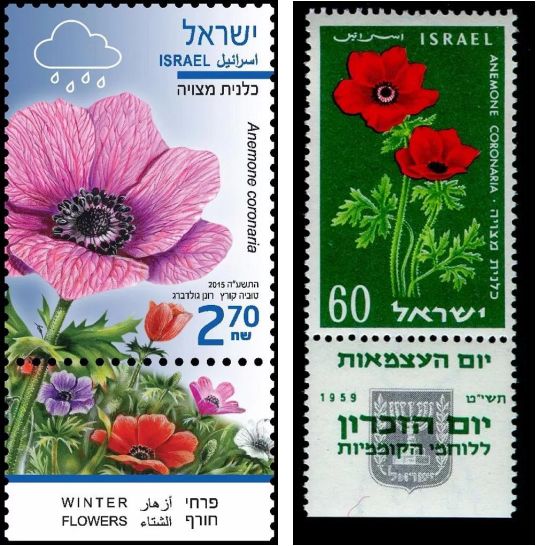 欧洲银莲花是毛茛科银莲花属多年生草本,有根状茎。叶基生,有长柄,掌状分裂,花单生于茎顶,有大红、紫红、粉、蓝、橙、白及复色,花径4厘米至10厘米(图1)。据有关资料介绍,该花世界上有200多个园艺品种。花形似莲花,花瓣有金属光泽,银莲花由此得名。以色列每年春季(1月至2月)都有“银莲花节”,以色列人称之为“Darom Adom”,意思是“the Red South”。著名的银莲花胜地Shokeda Forest(图2),大片殷红的银莲花盛开时,每年春天皆吸引大批游人前往赏花。它的身影也总出现在以色列的邮票上(图3)。它还是一种高档切花(图4),它的花语是——期待与不需回报的爱情。图片均来自网络。