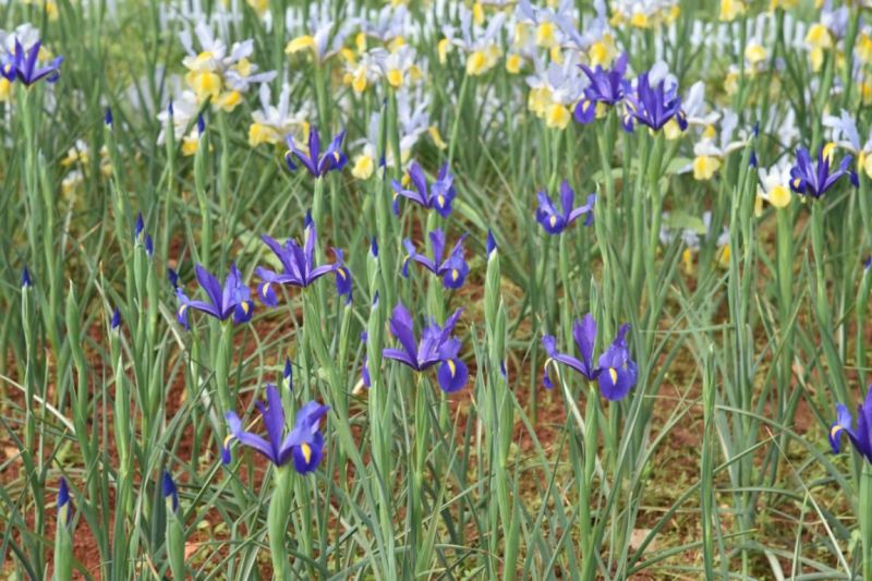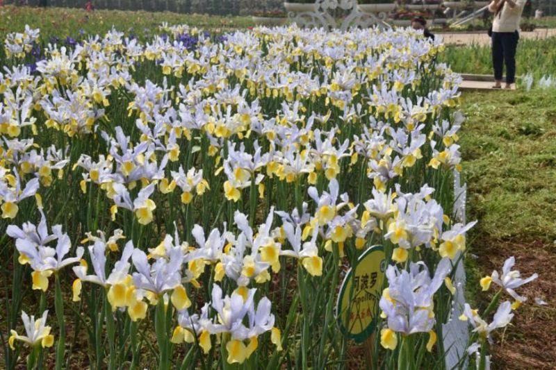 转眼已至4月中旬,正感叹郁金香与樱花的凋谢,‘阿波罗’(‘Apollo’)荷兰鸢尾却率先拉开了鸢尾季的帷幕。它的垂瓣是明亮的黄色,旗瓣俏立,染着清淡的紫色。此时,正值盛花期,它们亭亭玉立、娇艳欲滴的样子引得看到的人都不禁感叹。