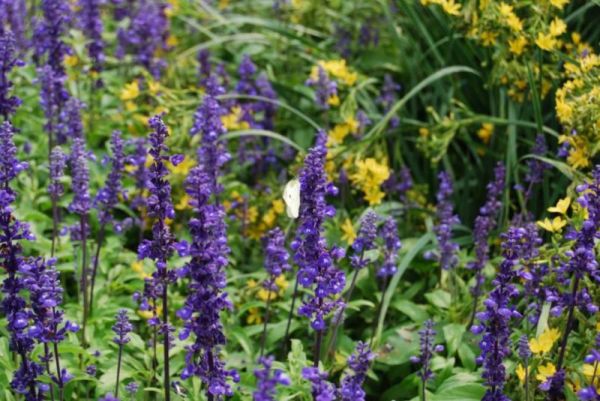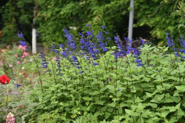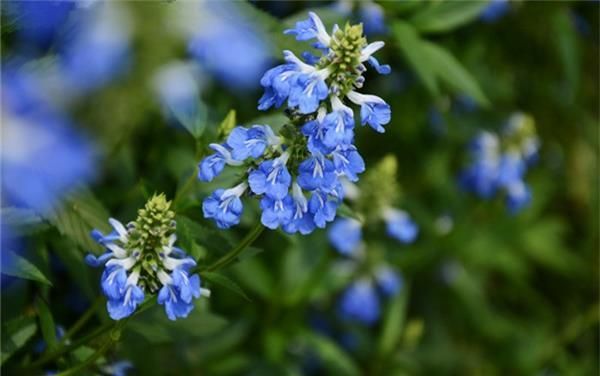 园里如今还有天蓝鼠尾草、蓝花鼠尾草、墨西哥鼠尾草等几种鼠尾草(依次是图3、4、5),前二者与深蓝鼠尾草花期接近,墨西哥鼠尾草又叫紫绒鼠尾草,则是毛绒绒的紫色花朵,主要是秋季开花。