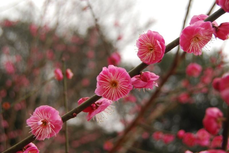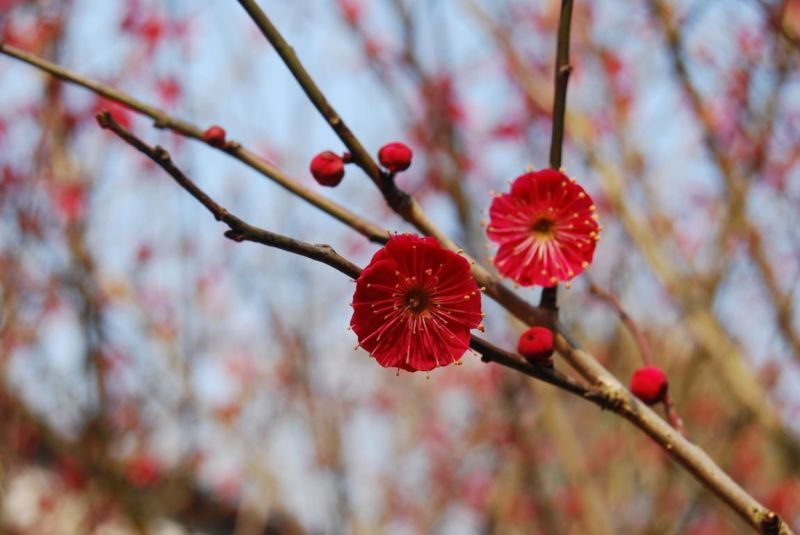 宫粉梅与朱砂梅的小枝