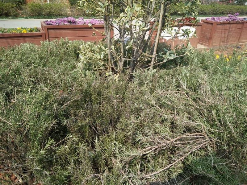 许多人走在名花广场靠近北门的大道上,都说闻到了浓浓的生姜香味呢,却不知此香从何而来?原来在这大道两旁种了近千株迷迭香灌木,为的是在植物园里打造一条香气盈鼻的芳香大道,它也是名花广场芳香植物区的主打种类。那香味正是那长相毫不起眼、类似松柏的迷迭香散发出来的。