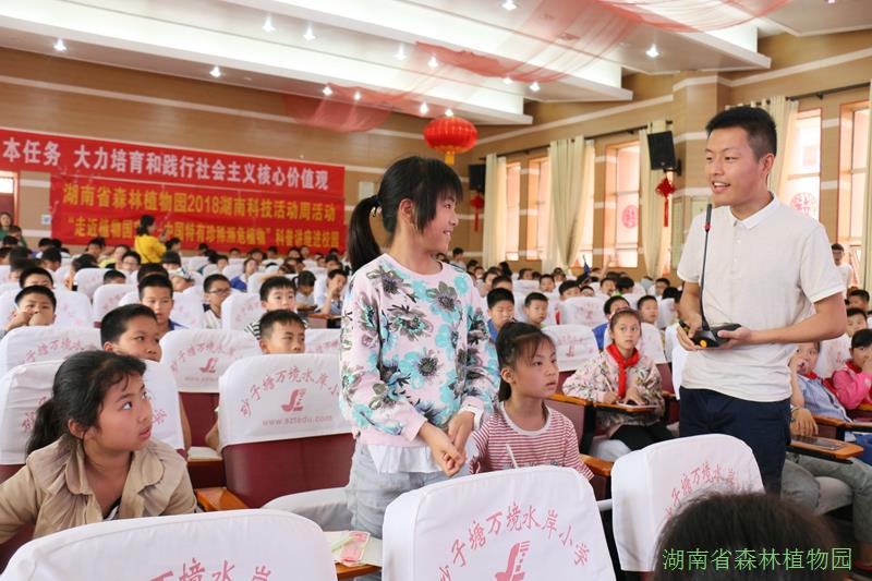 湖南省森林植物园2018湖南科技活动周“走进植物国宝——中国特有珍稀濒危植物”科普讲座进校园活动的第三站是砂子塘万境水岸小学。