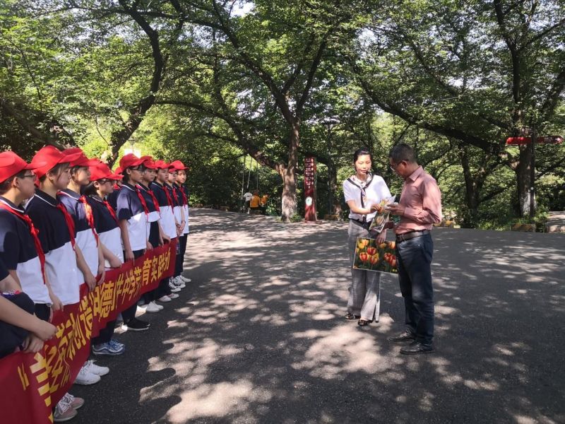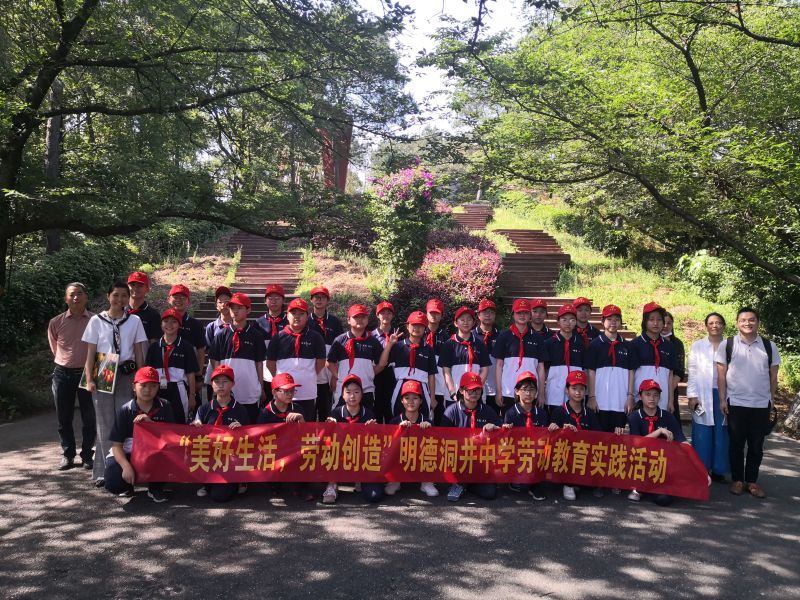 明德洞井中学为了进一步强化学生的劳动观念,培养学生良好的劳动习惯,增强学生劳动实践的技能。2020年05月12日下午,夏日炎炎,该校35名学生代表在校党支部书记曾志红的带领下,来我园开展了主题为“美好生活,劳动创造”的劳动教育实践活动。