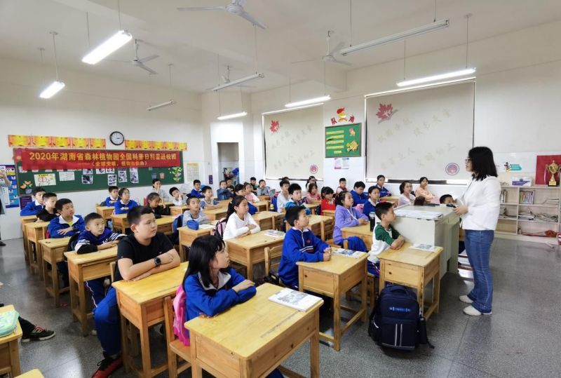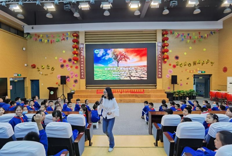 在2020年全国科普日活动期间,我园自然教育中心的老师们分别走进明德洞井中学、南屏锦源小学和枫树山中航城小学为大约480名师生举办了三场科普讲座活动。来自自然教育中心的园艺工程师黄秀老师通过PPT,为三所学校的同学们开展了《全球变暖,植物也怕热》的主题讲座。