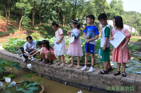 为了积极落实教育部、中国科协联合发布的《关于利用科普资源助推“双减”工作的通知》文件精神,充分利用科普资源助推“双减”工作,我园自然教育中心特意针对中小学生在暑假开展了科普资源助推“双减”——“湖南省植物园里的观察员”公益活动。本次公益活动在暑假期间共开展了五期,共有来自100多所中小学校、近600名学生与家长参加活动。