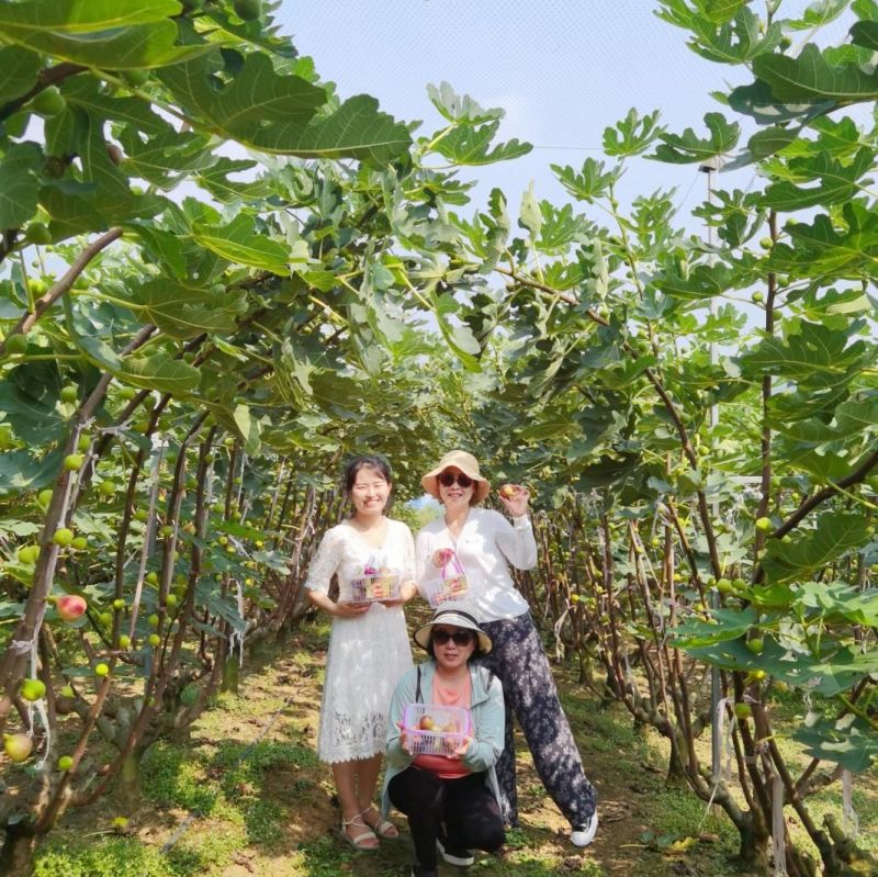 天气非常炎热,在农场工作人员引领下,大家进入无花果园区体验了亲手采摘的乐趣。一只只无花果挂在树梢上,有的还是绿色,有的黄绿色,有些已经泛红,底部也变成了紫色,工作人员告诉我们这些红色且软的无花果是时候采摘下来了。大家兴奋地穿梭在无花果树间,边聊边采摘,十分放松,好不惬意!