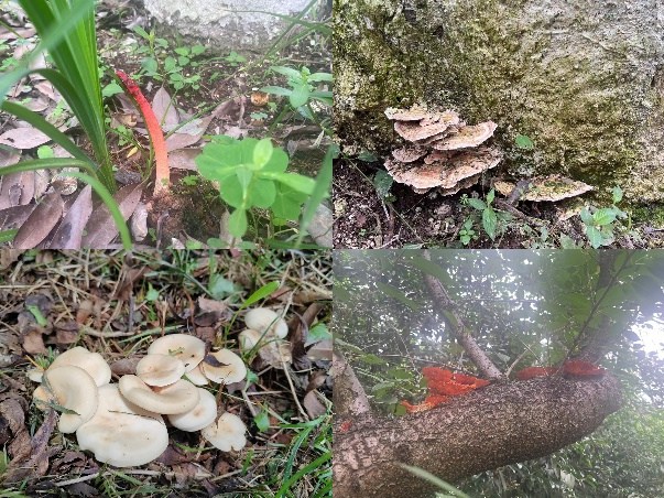 走进园区,最先映入眼帘的是色彩绚丽却散发着恶臭的长得粗壮的细皱鬼笔,还有形态如同舌头一样的大树舌,长在樱花树上宛如一把把鲜红色的小扇子的血红栓菌……