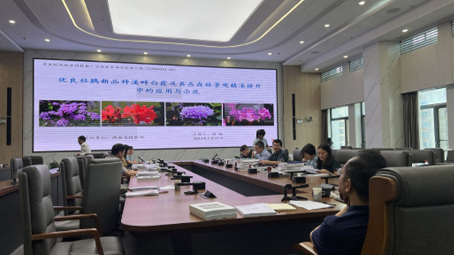 验收委员会根据项目组提交的验收材料,结合现场查定意见,并听取项目组汇报答辩,经质询和评议,一致认为该项目完成了合同规定的各项任务指标,达到了预期推广和示范效果,同意通过项目验收。该项目依托国家林业草原杜鹃工程技术研究中心这一平台,系统开展了溪畔白霞杜鹃等新优品种的繁育栽培、园林应用与景观构建技术推广,在园区营建溪畔白霞杜鹃等苗木繁育示范基地 10 亩;营造景观示范林 75 亩,繁育苗木 12 万株,编写培训和育苗技术手册各1 本,举办培训班 2 次,选派科技特派员 1 名,培训人员 200 人次,辐射带动了浏阳、宁乡和平江等地苗木产业发展和森林景观质量提升。项目的实施对丰富城乡森林景观、发展生态旅游、促进乡村振兴等方面产生了显著的经济、社会和生态效益。(撰稿/王玲 编辑/余帆 编审/周岚)。