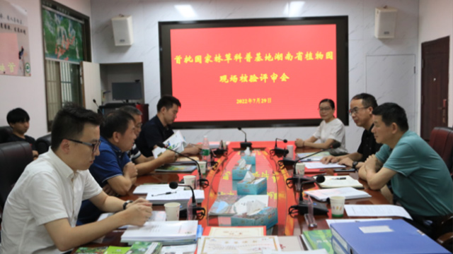 7月29日,国家林草局组织核验专家组来我园进行首批国家林草科普基地现场考核评审。专家组由国际竹藤中心副研究员牟少华、湖南省林业科学院研究员田育新、湖南省青羊湖国有林场副场长王伟三人组成。省林业局科技外事处三级调研员陈佳辉、植物园党委书记刘玮、园副主任蒋利洪、省林业局科技外事处三级主任科员曾崇华、自然教育中心负责人及相关工作人员参加现场核验会议。