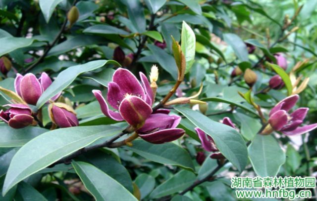 墨紫含笑(Michelia crassipes‘MOZI’)系我园科研人员从紫花含笑中选出的芽变新品种,2007年被湖南省林木良种审定委员会认定为优良观赏植物新品种。