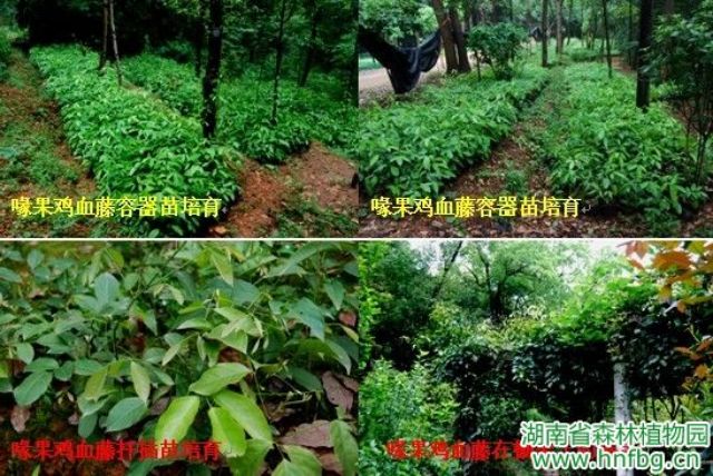 我园藤本植物研究中心经过10多年的研究从引种的藤本植物中筛选出优良园林藤本植物-喙果鸡血藤(Millettia tsui)。喙果鸡血藤为蝶形花科崖豆藤属(Millettia)常绿大型缠绕木质藤本,小枝绿色;三出复叶;圆锥花序顶生,花密集,单生,花冠淡黄色带微红或微紫色。荚果肿胀,顶端有坚硬的钩状喙而得名,种子近球形。花期7~9月,果期10~12月。分布湖南、广东、海南、广西、贵州、云南,湖南主产湘南的江永、江华和通道。喜温暖湿润气候,喜光照,可耐荫,适应性强,喜生湿润之地,可耐干旱瘠薄,较耐寒;常生于海拔200~1 600 m山地杂木林中。据我们试验研究喙果鸡血藤是长江流域以南地区棚架、假山、陡壁、护坡等处垂直绿化的好材料,并且其根、茎入药,能行血补气,治风湿关节痛;其茎皮纤维也可作人造棉、造纸和编织的原料;还是困难地造林的先锋植物种类。我园藤本植物研究中心已解决其繁殖和栽培技术,培育出容器苗50 000多盆,在我园棚架等垂直绿化之处和湖南的耒阳市和宜章县的石灰岩山地进行了示范栽培。