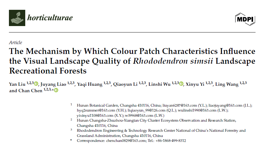 题目:The Mechanism by Which Colour Patch Characteristics Influence the Visual Landscape Quality of Rhododendron simsii Landscape Recreational Forests