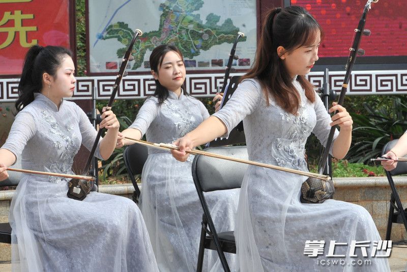 舞台上,民乐专场表演《唱支山歌给党听》《三伢子相亲》《乡情湘韵》等节目精彩纷呈,获得市民、游客的阵阵掌声。据悉,民乐专场表演是省植物园与长沙歌舞剧院长期合作的系列惠民活动,是长沙文艺与旅游的融合,是传统音乐和花文化的结合。民乐专场表演还有民乐演奏《赛马》《我的祖国》等,笛子独奏有《射雕》,中阮独奏《红梅赞》等。