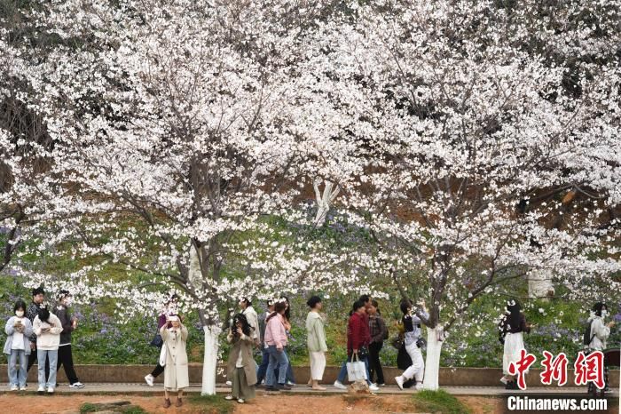 游人拍摄樱花树。杨华峰摄