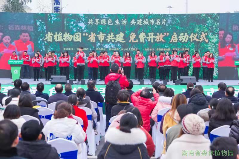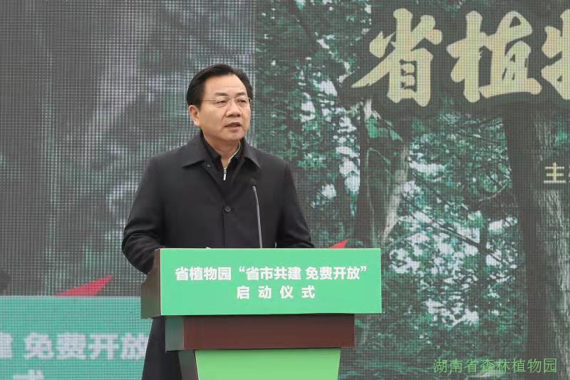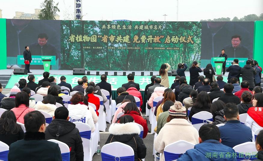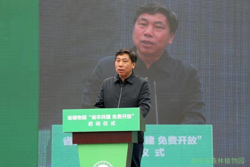 启动仪式由省人民政府副秘书长黎咸兴主持,省人民政府副省长陈文浩,省林业局党组书记、局长胡长清,长沙市委常委、市委秘书长廖建华先后致辞,长沙市委副书记、市长、湖南湘江新区党工委书记胡忠雄,省科技厅副厅长周建元,“省市共建、免费开放”联席会议制度成员单位省财政厅、雨花区政府、长沙市财政局、科技局、林业局、文旅广电局等,以及当地洞井街道、植物园社区等相关单位的领导嘉宾出席启动仪式。省林业局直系统志愿者团队在启动仪式上向广大市民和游客发出文明游园倡议。