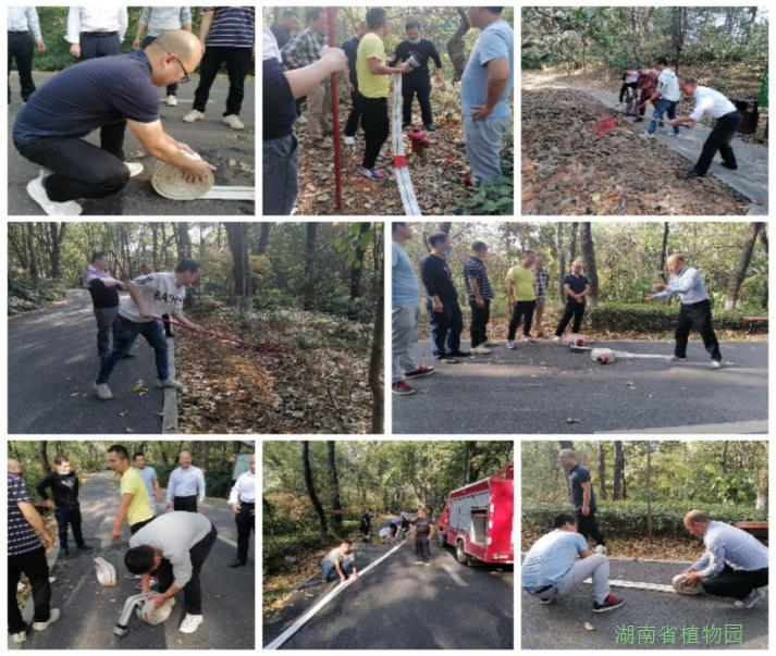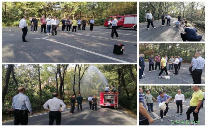 分管安全生产的园领导康用权现场指导应急队员进行灭火技能训练。队员们分成三组,第一组进行消防水车的操作训练,培训过程中,队员们详细了解消防车的使用方法、现场取水等相关知识和注意事项,认真掌握消防水带、水枪等器材的使用方法,并亲身参与了消防车发动、消防水带铺开洒水扑救和消防水带收拢装车等一系列完整流程 。第二组学习用2号工具橡胶灭火拖和3号铁丝耙扑火。第三组学习水带抛带、收带、接消防栓、水带加长时如何接口。