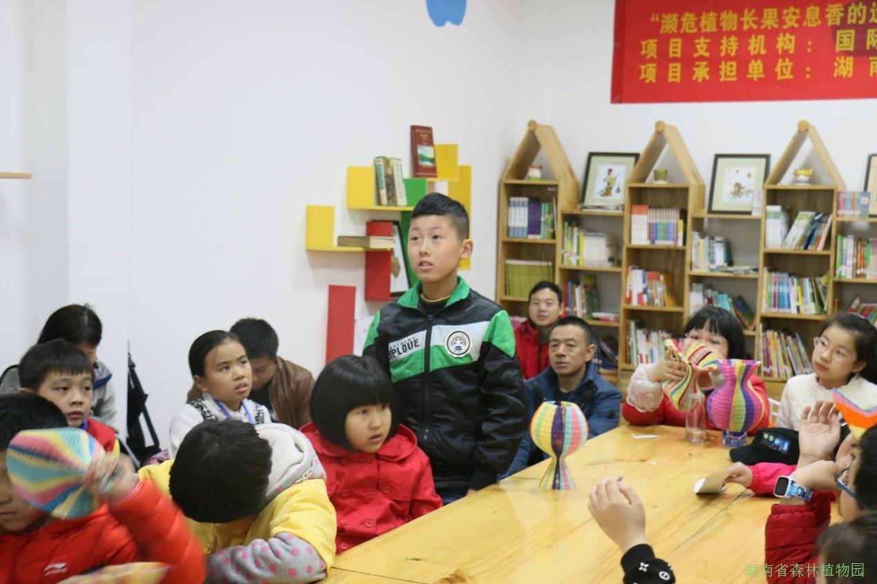 科普中心的曾老师向来自不同学校的40多名学生和家长讲解保护濒危植物长果安息香的故事。曾老师首先向大家介绍什么是长果安息香,长果安息香(Changiostyrax dolichocarpa)属于安息香科,秤锤树属,是一种落叶乔木或灌木。果实似秤锤,果序下垂,随风摆动,融观花、观果与环保为一体的多功能树种和庭园绿化优良树种。中国特有树种,濒危树种,是我国的二级保护植物。然后向学生们提出什么是濒危、长果安息香在野外为什么不易自然生长繁殖等问题?同学们通过观察PPT讲座上的文字介绍,立马分析出很多原因,积极举手并一一回答。孩子们的精彩表现得到了BGCI中国项目办主任文香英和在坐家长的掌声和一致肯定。
