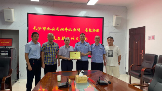 近日,长沙市公安局关于对2022年度全市群防群治快速反应支援平台建设工作成绩突出集体和个人予以通报表彰,从全市3015个群防群治快反平台中遴选出80个优秀平台予以通报表扬,省植物园获此殊荣。同时,省植物园资源环境保护中心主任还被评为成绩突出个人。9月18日,长沙市公安局洞井派出所伍海副所长一行专程来园交授表彰牌匾。
